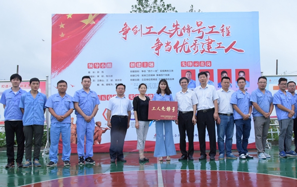 8月12日下午,集團(tuán)公司工會副主席吳曉伍、女工委主任胡愛紅一行蒞臨公司阜陽北路高架1標(biāo)項(xiàng)目,驗(yàn)收“工人先鋒號”創(chuàng)建工作并授牌。