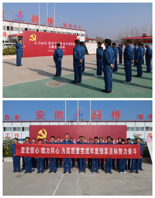 為充分發(fā)揮基層黨組織戰(zhàn)斗堡壘作用與黨員先鋒模范作用,全面落實(shí)公司“大干60天”勞動(dòng)競(jìng)賽活動(dòng)方案相關(guān)要求,合蕪02標(biāo)項(xiàng)目黨支部在11月23日下午開展了“大干60天、黨員當(dāng)先鋒、奮斗出佳績(jī)”主題黨日活動(dòng)。
