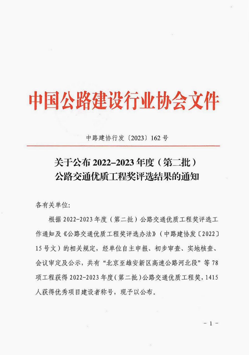 公路交通優(yōu)質(zhì)工程獎(李春獎)主要圍繞建設(shè)管理理念、工程建設(shè)質(zhì)量、科技創(chuàng)新成果等方面進(jìn)行選拔,是全國公路交通行業(yè)最高質(zhì)量獎,也是公路建設(shè)者的最高榮譽(yù)。