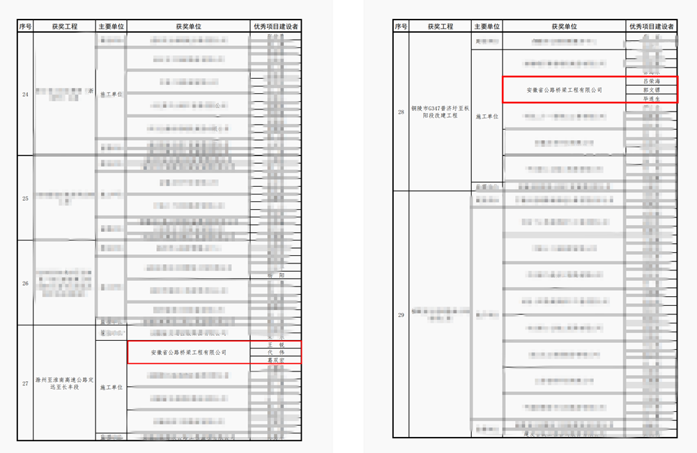 近日,中國公路建設(shè)行業(yè)協(xié)會公布2022~2023年度(第二批)公路交通優(yōu)質(zhì)工程獎(李春獎)名單,公司參建的滁州至淮南高速公路定遠(yuǎn)至長豐段、銅陵市G347普濟(jì)圩至樅陽段改建工程2個項(xiàng)目榜上有名。截至目前,公司已摘得12項(xiàng)“李春獎”。