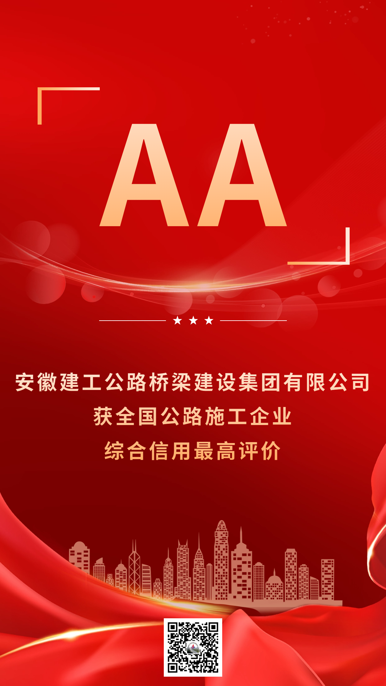 “AA”級!公司再獲全國公路施工企業(yè)綜合信用最高評價