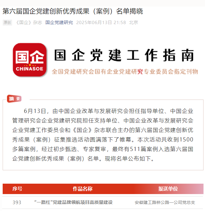 公司黨建品牌獲評(píng)國(guó)企黨建創(chuàng)新優(yōu)秀成果(案例)