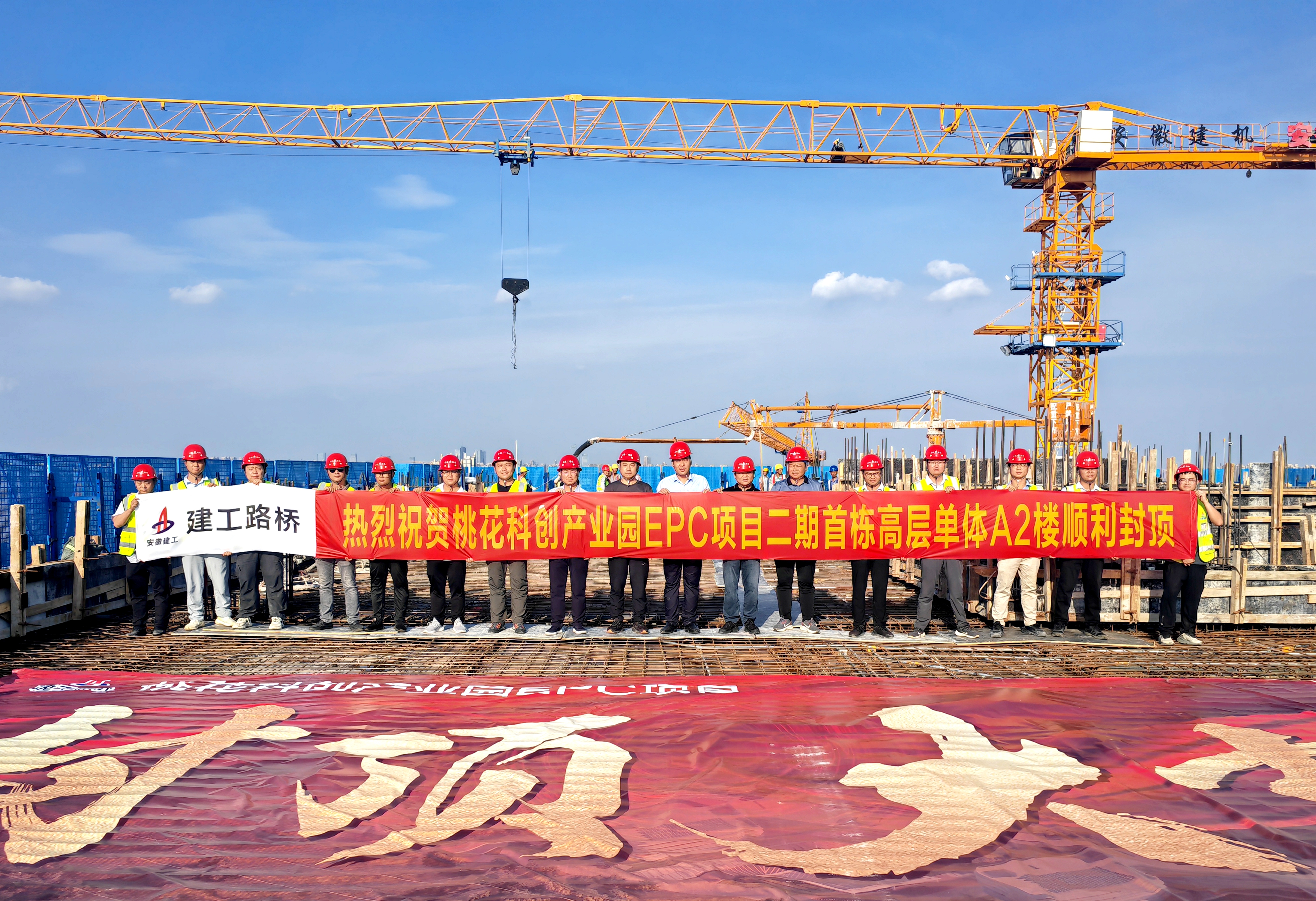 黨建與生產(chǎn)的同頻共振,不僅破解了建設(shè)難題,更催生了“1+1>2”的倍增效應(yīng)。項(xiàng)目黨支部緊扣項(xiàng)目不同建設(shè)周期的特點(diǎn),精心組織開展黨員包保督導(dǎo)、任務(wù)攻關(guān)等特色活動十余次,為項(xiàng)目順利推進(jìn)筑牢堅(jiān)實(shí)保障。尤其在二期主體結(jié)構(gòu)攻堅(jiān)階段,黨支部聚焦“急難險(xiǎn)重”任務(wù),火速組建項(xiàng)目黨員突擊隊(duì)、設(shè)立7個(gè)黨員先鋒崗,以“越是艱險(xiǎn)越向前”的擔(dān)當(dāng),成功攻克施工作業(yè)面廣、交叉作業(yè)密集、施工精度嚴(yán)苛等重大挑戰(zhàn),科學(xué)統(tǒng)籌工序銜接、優(yōu)化資源配置,最終創(chuàng)下地上結(jié)構(gòu)“6天/層”的施工佳績,僅用7個(gè)月實(shí)現(xiàn)主體結(jié)構(gòu)封頂,生動詮釋了黨建引領(lǐng)下的“路橋速度”與“紅色擔(dān)當(dāng)”。項(xiàng)目獲評2024年度安徽省重大項(xiàng)目建設(shè)勞動競賽二等獎(jiǎng)等榮譽(yù)稱號。