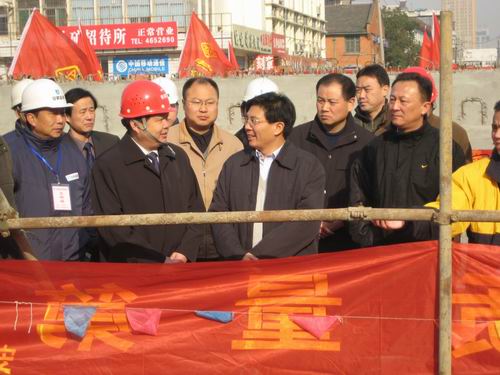 | 2008年元旦,冬日暖陽普照著大地,合肥“大建設(shè)”工地依然是是一派熱火朝天的場面。     上午10時,省委常委、市委書記孫金龍,市委常委、秘書長安列,合肥市重點(diǎn)局等領(lǐng)導(dǎo)在公司總經(jīng)理王可武等同志的陪同下深入暢通一環(huán)C標(biāo)寧國路橋梁施工工地,親切慰問元旦堅持戰(zhàn)斗在一線的建設(shè)者們。孫金龍書記代表市委、市政府向元旦堅持戰(zhàn)斗在一線的建設(shè)者們?yōu)榻ㄔO(shè)美好家園、創(chuàng)造美好生活所做出的貢獻(xiàn)表示衷心的感謝,并致以節(jié)日的問候。     孫金龍一行來到暢通一環(huán)C標(biāo)寧國路橋上,他與正在施工的建設(shè)者們一一握手,親切交談,詳細(xì)詢問他們工作生活情況,并代表市委、市政府送上了新年祝福。他說:“同志們辛苦了,我向大家表衷心的感謝!合肥人民也感謝你們!”他同時提出要求說:“作為老城區(qū)的道路建設(shè),我們要在保證質(zhì)量、安全的前提下,越快越好,早一天建成,早一天緩解這一段的交通壓力”。 |