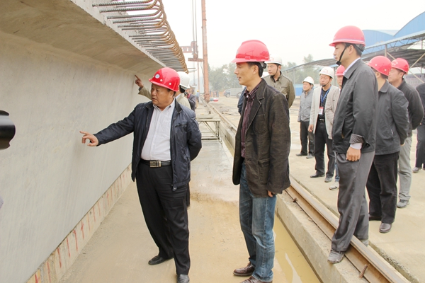屠董事長一行在寧千02標(biāo)項目玉虹大橋梁場進行了實地察看,并聽取了項目負(fù)責(zé)人對項目施工進展情況的介紹。屠董事長一行對寧千02標(biāo)項目目前取得的成績表示滿意,對寧千02標(biāo)項目部上下團結(jié)一致,有力抓住大干時機,加快推進施工進度的有效舉措表示肯定。屠董事長要求項目在下一步的工作中一定組織安排好后續(xù)施工計劃和進度計劃,強化細(xì)節(jié)管理,做好質(zhì)量安全管理,保證重大施工節(jié)點的落實。