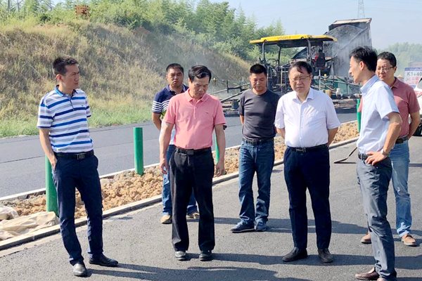 省交控集團(tuán)總經(jīng)理錢東升蒞臨廣寧高速路面項目檢查指導(dǎo)工作 發(fā)布時間:2018年08月10日 來源:路面公司 發(fā)布人: 作者:圖/文 褚祥 葛偉 瀏覽:3517次 8月8日,省交控集團(tuán)總經(jīng)理錢東升、建管部部長蘇新國一行蒞臨廣寧高速路面項目檢查指導(dǎo)工作,廣寧高速項目辦主任方昱陪同。 錢東升一行深入瀝青施工現(xiàn)場,對正在進(jìn)行的瀝青攤鋪施工進(jìn)行了檢查指導(dǎo)。錢東升要求項目部要統(tǒng)籌應(yīng)對此輪材料價格上行壓力,多措并舉加快瀝青料的儲備,積極搶抓有利天氣進(jìn)一步加快施工進(jìn)度;同時要做好防暑降溫工作,確保廣寧高速按既定時間節(jié)點順利通車。