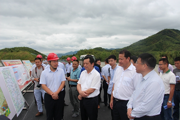 9月17日上午,宣城市委書記陶方啟、市長張冬云蒞臨廣寧高速項目調研建設情況,副市長牛傳勇、廣德縣委書記王慶武、項目辦主任方昱、公司總經理錢申春陪同。