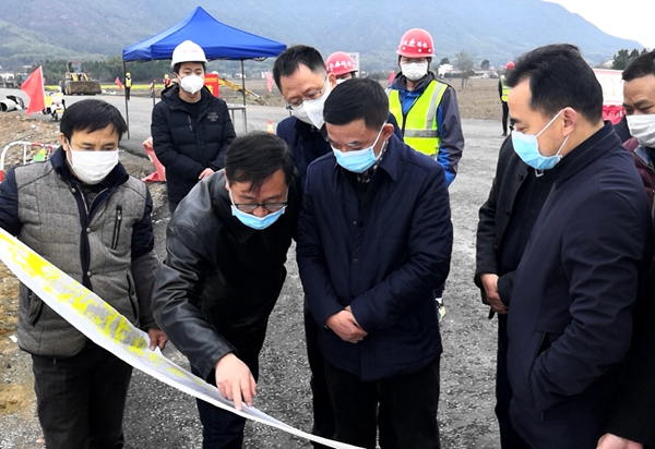 3月1日下午,安徽省交通運(yùn)輸廳總工程師章后忠一行到公司承建的涇縣208省道延伸段調(diào)研防疫和復(fù)工工作,涇縣副縣長(zhǎng)程禮奎、交通運(yùn)輸局局長(zhǎng)曹建華等陪同。