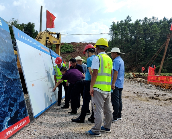 8月20日下午,安徽省交通運(yùn)輸廳黨組成員、總工程師章后忠到宣涇高速?zèng)芸h樞紐互通項(xiàng)目調(diào)研指導(dǎo)工作。
