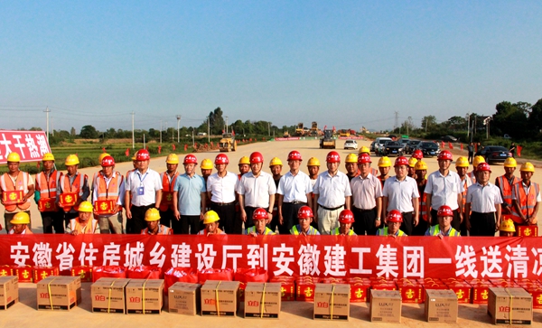 在施工現(xiàn)場,陳楊年代表安徽省住建廳向參建人員表示慰問,并為一線施工人員發(fā)放了防暑降溫慰問品。他指出,進(jìn)入暑期以來,一線作業(yè)人員戰(zhàn)高溫、斗酷暑、搶工期、趕進(jìn)度。希望省路橋公司要壓實安全生產(chǎn)主體責(zé)任,科學(xué)安排施工作業(yè)時間,做好防暑降溫工作,保證參建人員的施工安全;廣大工友要立足崗位,做好本職工作,牢記安全規(guī)章制度,確保身體健康和施工安全。