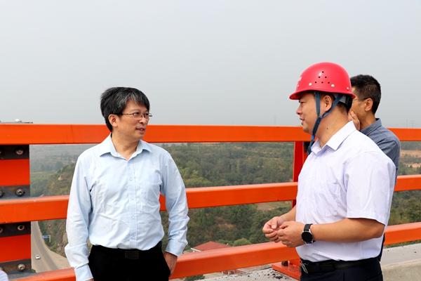 9月25日,交通運(yùn)輸部科技司副司長(zhǎng)洪曉楓一行到公司承建的河南濟(jì)洛西黃河特大橋項(xiàng)目調(diào)研指導(dǎo)工作。