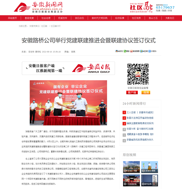 【名媒聚焦】《安徽新聞網(wǎng)》報道公司國有企業(yè)與非公企業(yè)黨建聯(lián)建簽訂儀式