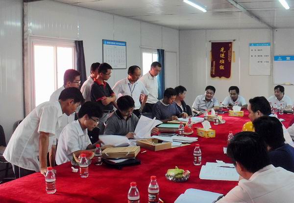 隨后,檢查組來到項目部對安全、質(zhì)量、試驗等內(nèi)業(yè)資料進行了檢查。檢查組認真查看了路基填筑、沖壓以及橋梁工序自檢資料,對資料不規(guī)范處進行了指導(dǎo),要求我部在施工中及時、準(zhǔn)確、規(guī)范完成內(nèi)業(yè)資料的整理工作。同時,檢查組對工地臨時試驗室進行了全面檢查,對儀器設(shè)備、標(biāo)管理養(yǎng)護情況、試驗室臺帳以及施工砼配合比做了檢查。