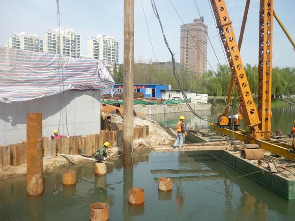 宋斗灣路項目完成南淝河河中鋼管樁打設工作