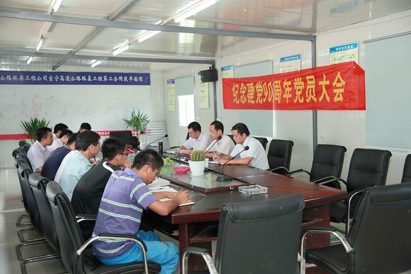 在中國共產(chǎn)黨成立90周年之際,宣寧高速02標項目部于7月5日召開黨支部大會,項目經(jīng)理余躍、項目支部書記王秋華等全體黨員以及入黨積極分子參加會議。四分公司黨總支書記汪家富、工會主席張揚到會指導(dǎo)。